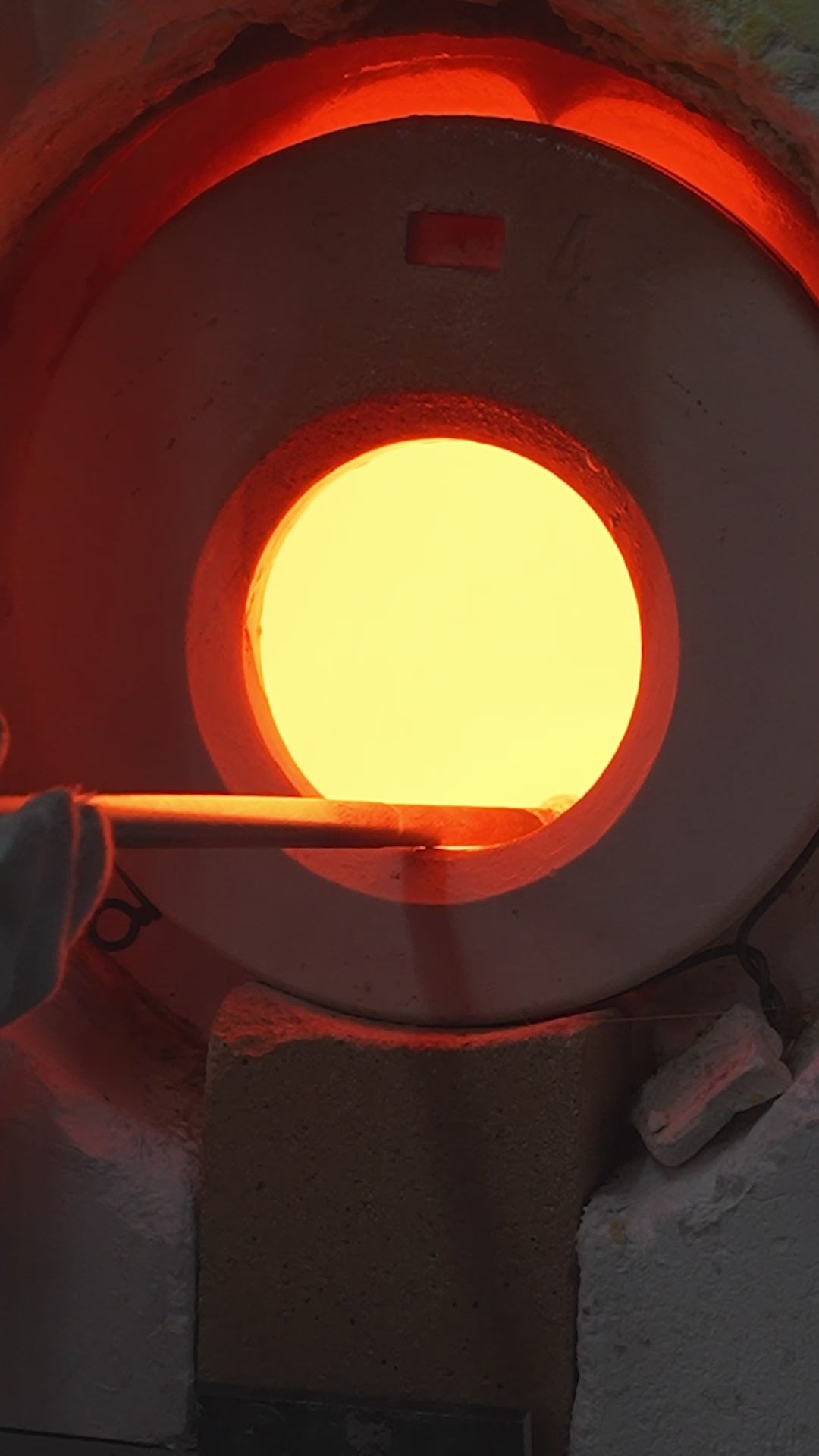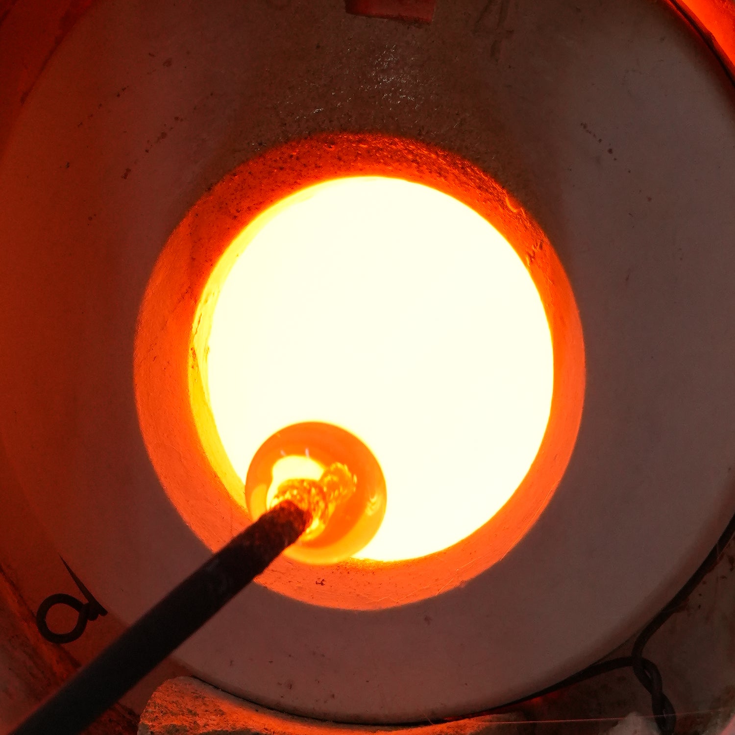 約1,270℃の溶けたガラスを竿に巻き取るように取り出します。