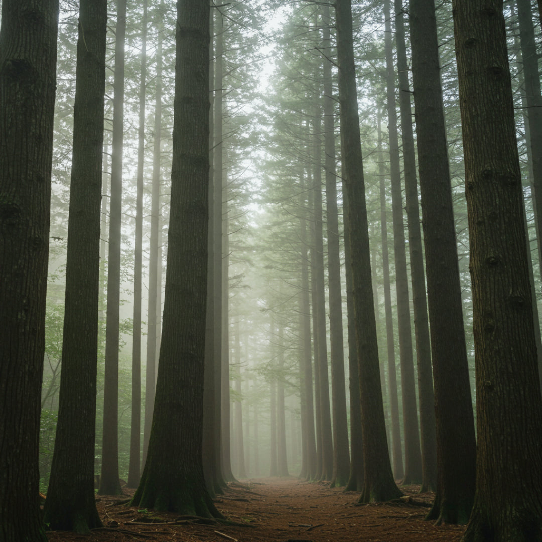 目を閉じ、深く息を吸い込む。 そこに広がるのは、静寂に包まれた日本の森。 凛とした空気に、心洗われるような清々しさ。